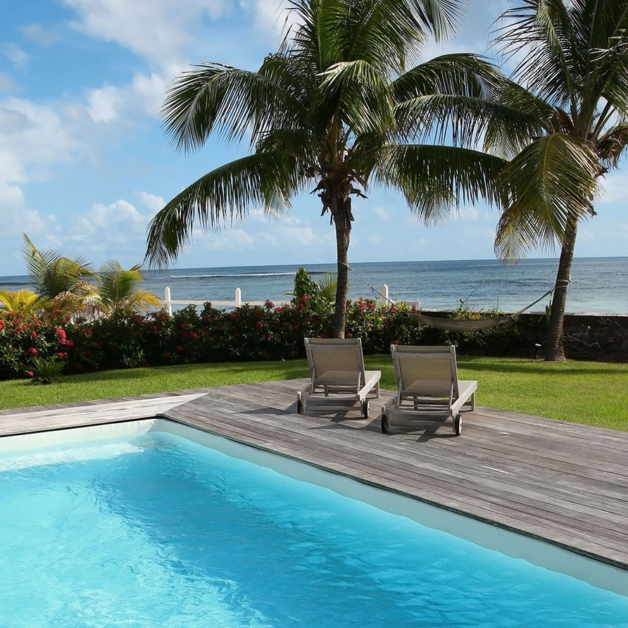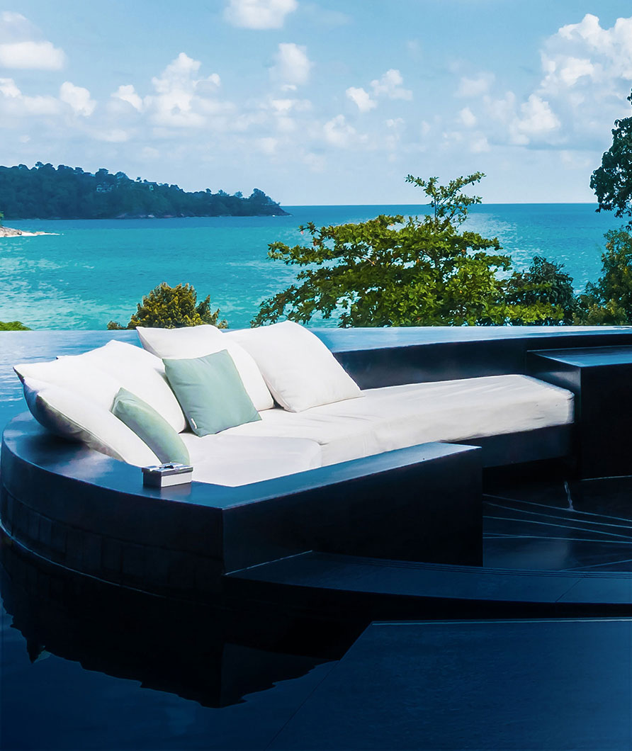 Η τεράστια πισίνα μήκους 15 μέτρων είναι ευχάριστο να καθίσετε με θέα στον απέραντο γαλάζιο ωκεανό.